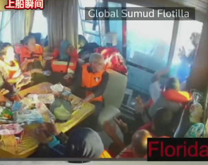 进入船舱之后,一名以色列军人没有过多的停顿,直接来到舱内摄像头的跟前,一把把摄像头拽下,视频戛然而止。